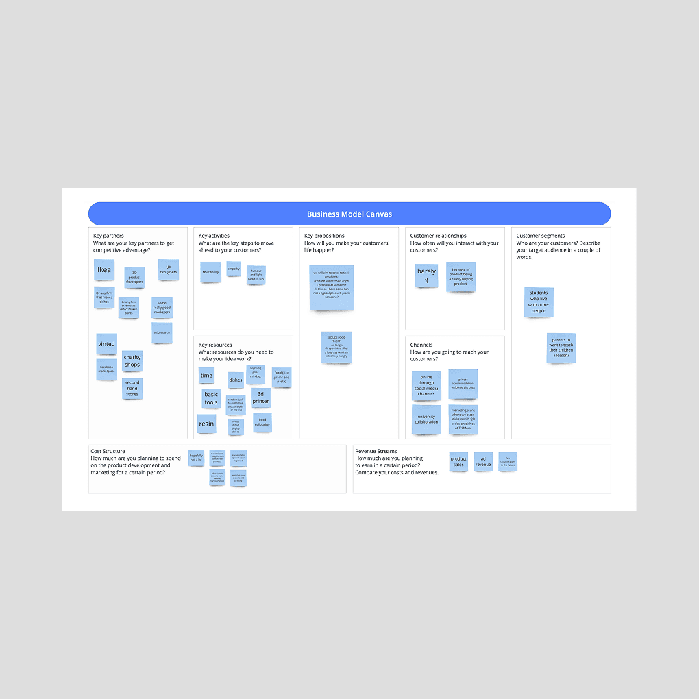 This project explores a playful yet thought-provoking business idea that addresses the everyday frustration of messy shared kitchens through the use of fake dirty dishes. In many shared households, differences in personal habits, upbringing, mental health, and standards of cleanliness often lead to tension and conflict. For those who value a tidy space, repeatedly reminding flatmates to clean up can become exhausting and strain relationships.